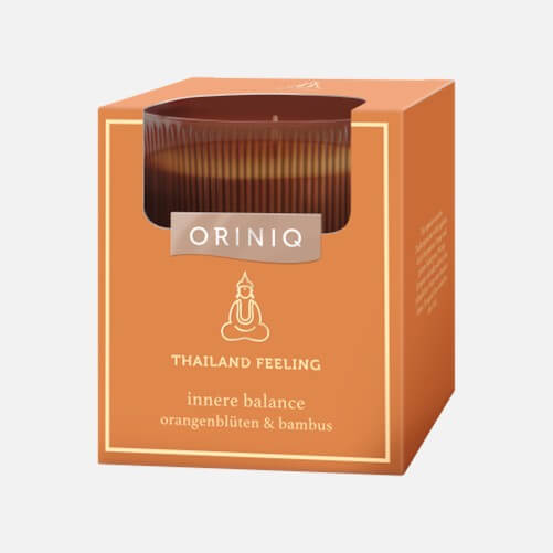 Mach’s dir Zuhause so richtig gemütlich: Die ORINIQ Duftkerze THAILAND FEELING holt dir ein kleines Stück Luxus und Entspannung in deine vier Wände. Die tropisch-exotische Duftkomposition wird eingeleitet durch Bergamotte, Orange und grünen Eukalyptus. Würzige Elemente verbinden sich mit pflanzlichen Noten eines Bambus-Hains. Orangenblüten umhüllen den Duft. Entdecke auch die Duftstäbchen zur Wellnesswelt THAILAND FEELING.