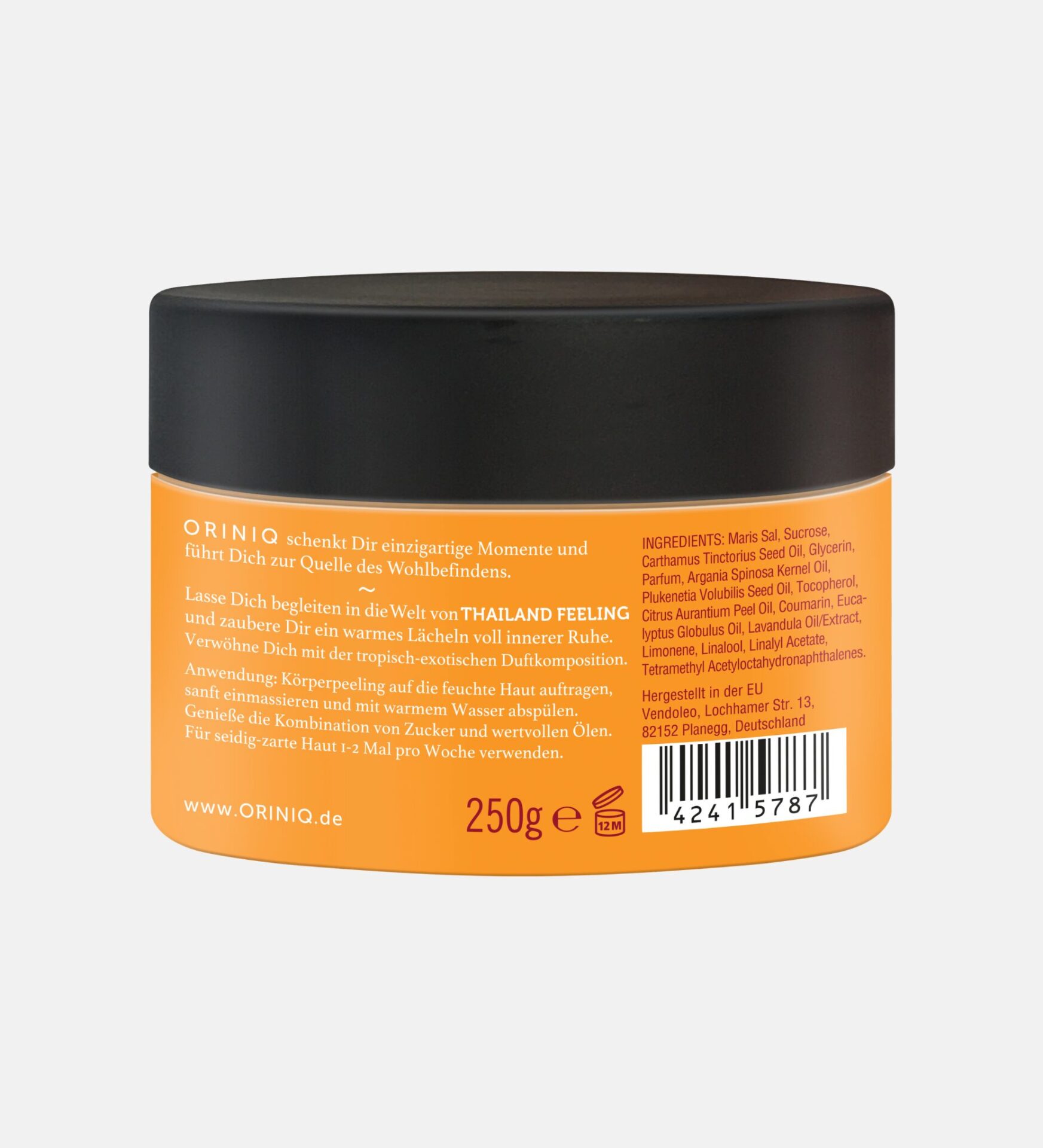Das THAILAND FEELING Zucker-Öl-Peeling sorgt für ein zartes & gleichmäßiges Hautgefühl. Die tropisch-exotische Duftkomposition nach Orangenblüte & Bambus weckt Sommererinnerungen. Das Zucker-Öl-Peeling ist die perfekte Pflegeergänzung zur THAILAND FEELING Pflegedusche.